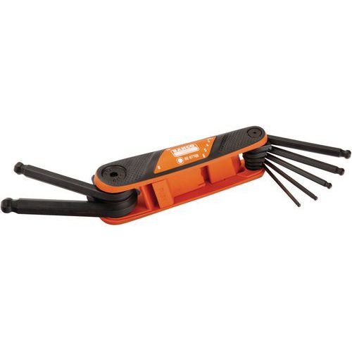 | Intitulé du produit | Jeu clés mâles 6 pans repliable manche bimatière 7 pièces, Empreinte vis: 6 pans creux, Nb de clés: 7 |