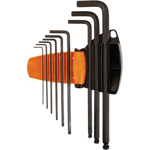 | Intitulé du produit | Jeu clés mâles 6 pans sphériques support aimanté compact, Empreinte vis: 6 pans creux, Nb de clés: 9 |