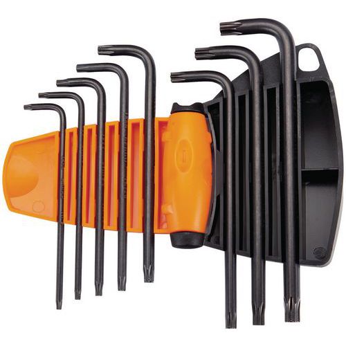 | Intitulé du produit | Jeu clés mâles TORX Tamper phosphatées 8 pièces, Empreinte vis: Torx, Nb de clés: 8, Matériau: Acier |