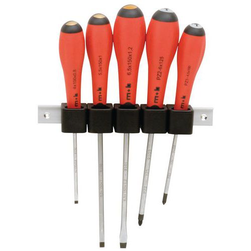 | Intitulé du produit | Jeu de 5 tournevis sur reglette fente + phillips, Nb de pièces: 5, Empreinte vis: Philips |