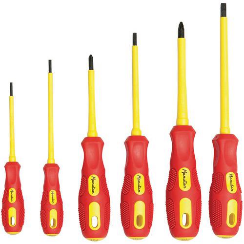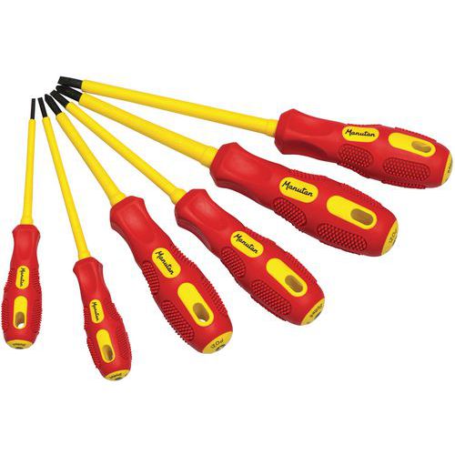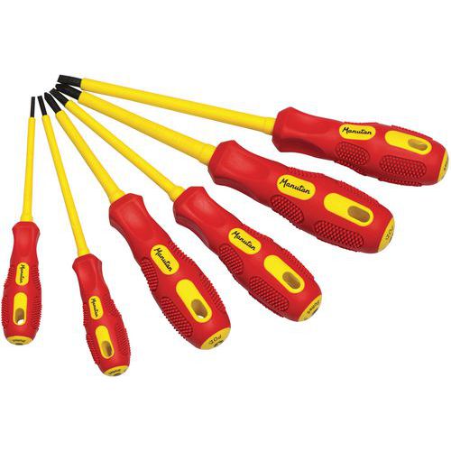 - Jeu tournevis isolés vis Pozidriv et vis fente 5 pièces.