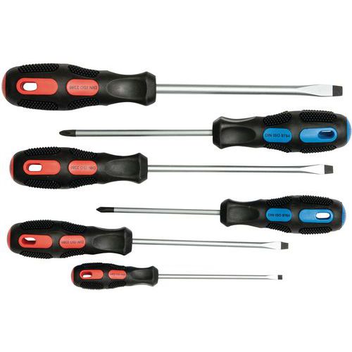 | Intitulé du produit | Jeu de 6 tournevis plats et Phillips, Type d'embout: Plat-Phillips®, Nb de pièces: 6, Usage: Serrage |