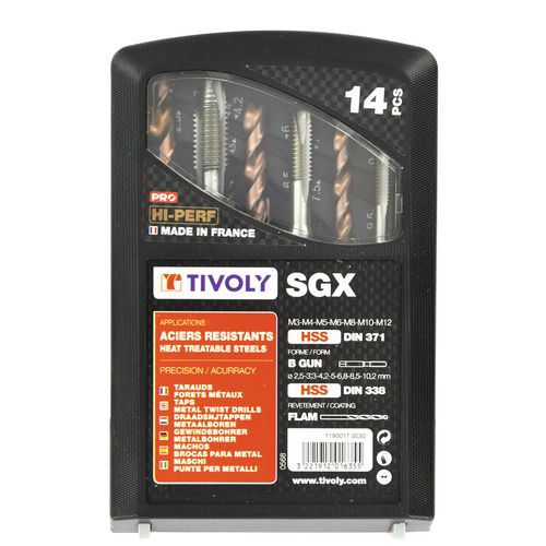 | Intitulé du produit | Jeu de forets+tarauds HSS Fusio, Nb de pièces: 14, Usage: Perçage, Réf. Fabricant: 11900170030 |