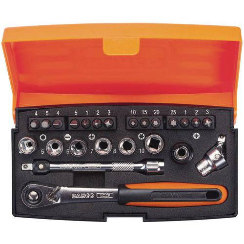 | Intitulé du produit | Jeu douilles 1/4 6 pans métriques et embouts 24 pièces- Bahco, Nb de pièces: 24 |