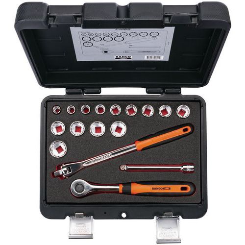 | Intitulé du produit | Jeu douilles 3/8 avec cliquet tête ronde/poignée articulée, Nb de pièces: 17 |