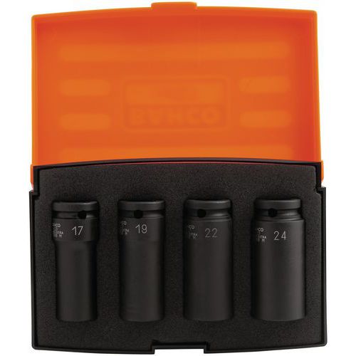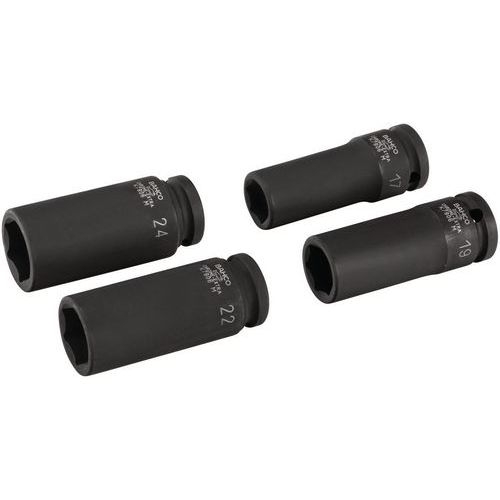 | Intitulé du produit | Jeu douilles à chocs longues 1/2'' 6 pans 4 pièces, Matériau: Acier, Poids du produit: 1140 g |