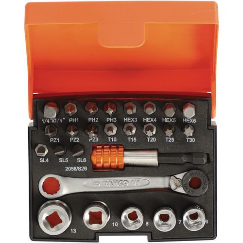 | Intitulé du produit | Jeu embouts et douilles 1/4 26 pièces, Nb de pièces: 26, Assortiment: Composition d'outillage |