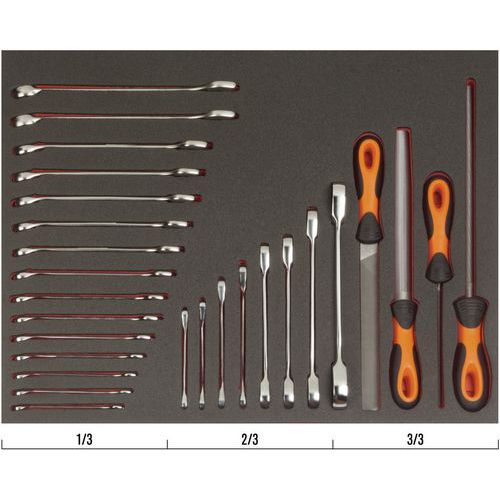 | Intitulé du produit | Jeu limes et clés module mousse 3/3 Fit&Go 27 pièces, Nb de pièces: 27, Poids: 3.39 g |