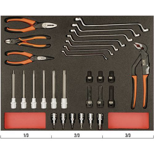 | Intitulé du produit | Jeu pinces/clés module mousse 3/3 Fit&Go 29 pièces, Nb de pièces: 29, Poids du produit: 3.9 g |