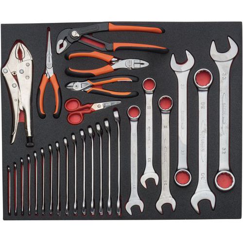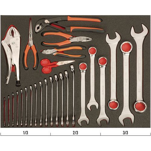 | Intitulé du produit | Jeu pinces et clés module mousse 3/3 Fit&Go 27 pièces, Nb de pièces: 27, Poids du produit: 5.15 g |