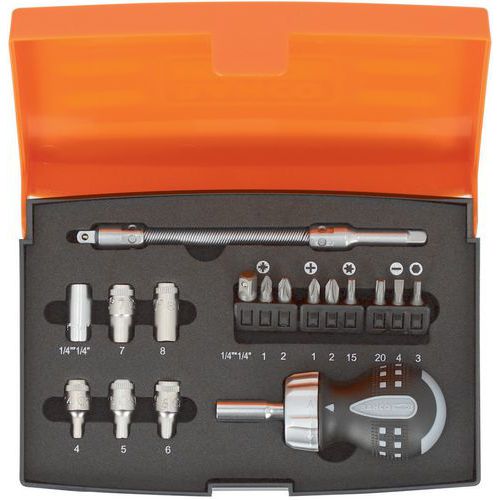 | Intitulé du produit | Jeu tournevis à cliquet porte-embouts 1/4 18 pièces, Nb de pièces: 18, Assortiment: Composition d'outillage |