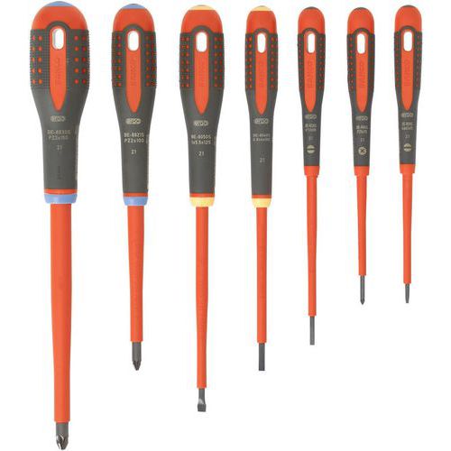 | Intitulé du produit | Jeu tournevis ERGO isolés VDE manche tri-matière 7 pièces, Usage: Vissage, Isolation 1000 V: oui |