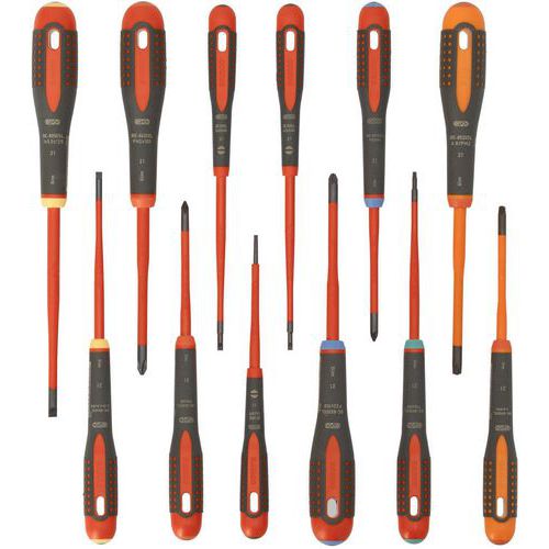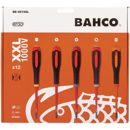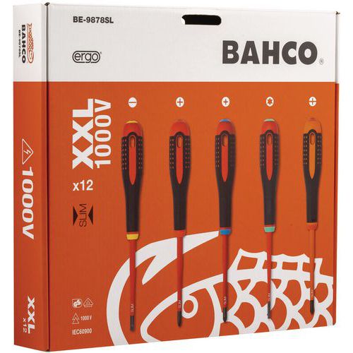| Intitulé du produit | Jeu tournevis ERGO Slim isolés VDE manche tri-matièremm - Bahco, Lame longueur: 175 mm, Lame matériau: Acier |