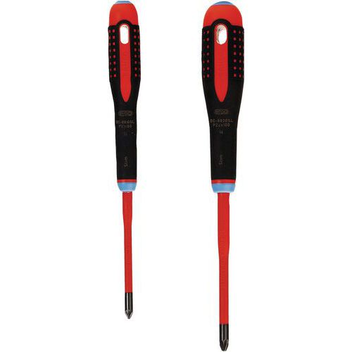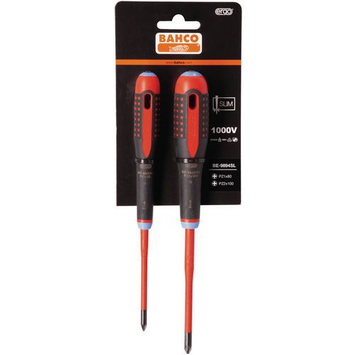| Intitulé du produit | Jeu tournevis ERGO Slim isolés VDE vis Pozidriv, Usage: Vissage, Isolation 1000 V: oui, Poids: 0.132 g |