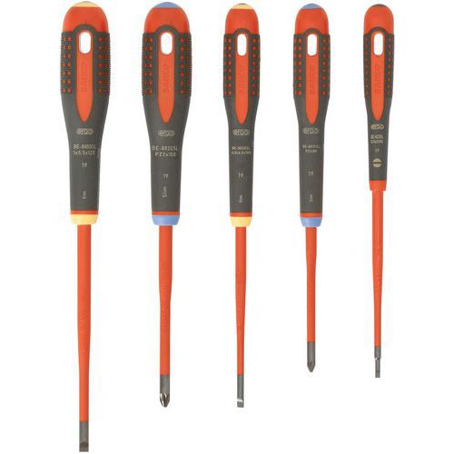 | Intitulé du produit | Jeu tournevis ERGO Slim isolés VDE vis Pozidriv, Lame longueur: 175 mm, Lame matériau: Acier, Usage: Vissage |
