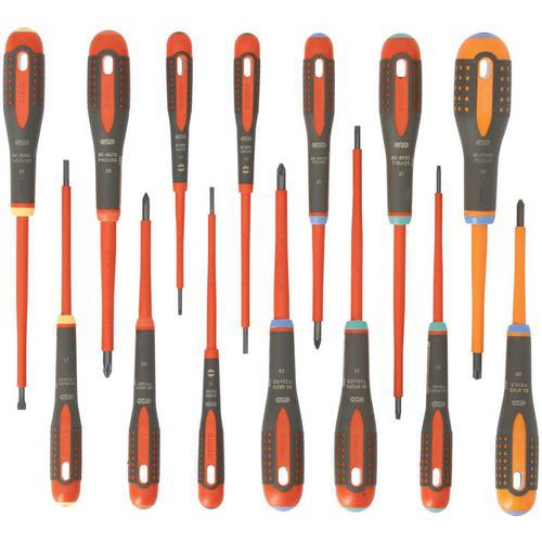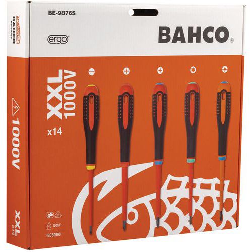 | Intitulé du produit | Jeu tournevis fente PH/PZ/TORX/Combi PZ poignée caoutchouc - Bahco, Nb de pièces: 15, Empreinte vis: Fente |