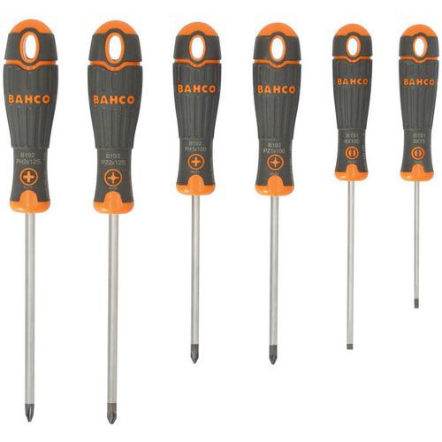 | Intitulé du produit | Jeu tournevis fente/Phillips/Pozidriv BahcoFIT 6 pièces - Bahco, Nb de pièces: 6, Empreinte vis: Philips |