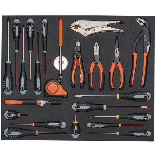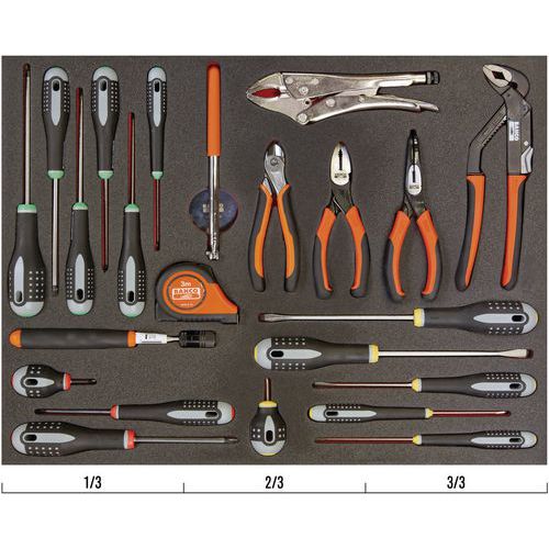 | Intitulé du produit | Jeu tournevis/pinces module mousse 3/3 Fit&Go 23 pièces, Nb de pièces: 23, Poids du produit: 2.82 g |