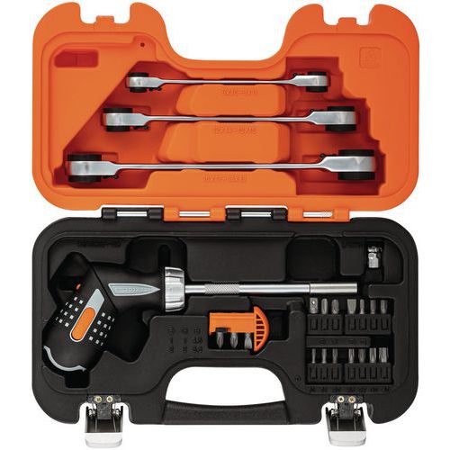 | Intitulé du produit | Jeu tournevis porte-embout à cliquet 1/4, Nb de pièces: 25, Assortiment: Composition d'outillage |