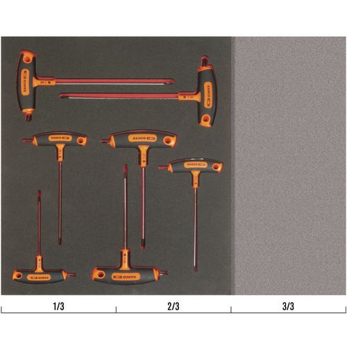 | Intitulé du produit | Jeu tournevis TORX manche T module mousse 2/3 Fit&Go 7 pièces, Nb de pièces: 7, Poids du produit: 0.72 g |