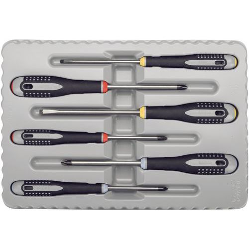| Intitulé du produit | Jeu tournevis vis fente ERGO/Phillips/Pozidriv 6 pièces, Nb de pièces: 6, Empreinte vis: Pozidriv |