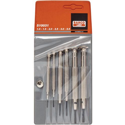 | Intitulé du produit | Jeu tournevis vis fente poignée précision 1,0-3,5mm 6 pièces, Nb de pièces: 6, Empreinte vis: Fente |