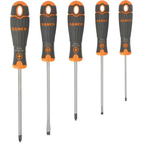 | Intitulé du produit | Jeu tournevis vis fente/Pozidriv BahcoFit caoutchouc 5 pièces, Nb de pièces: 5, Empreinte vis: Philips |