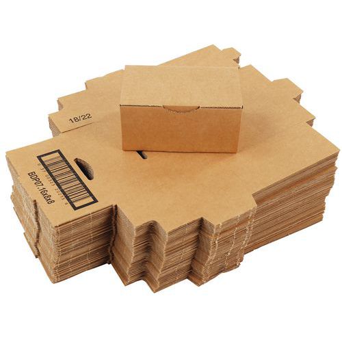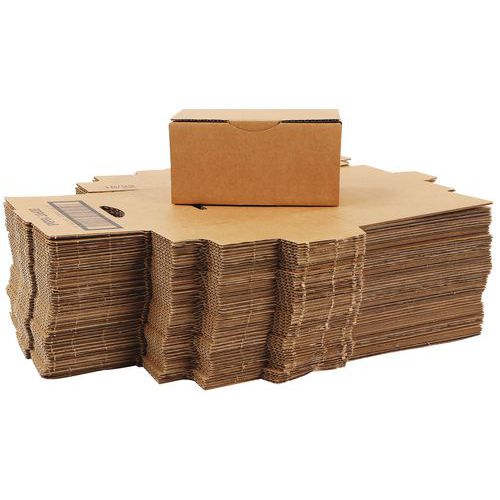 Boîte d'expédition en solide carton kraft. Facile à ouvrir et à fermer avec languette. Envoyez par la poste tous vos produits petits et fragiles !