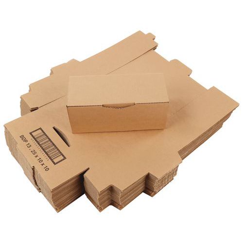 Boîte d'expédition en solide carton kraft. Facile à ouvrir et à fermer avec languette. Envoyez par la poste tous vos produits petits et fragiles !
