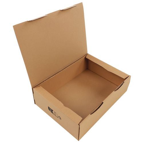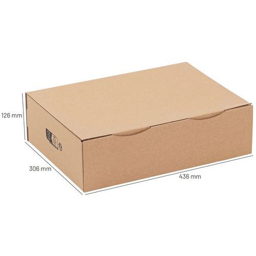 Boîte d'expédition en solide carton kraft. Facile à ouvrir et à fermer avec languette. Envoyez par la poste tous vos produits petits et fragiles !