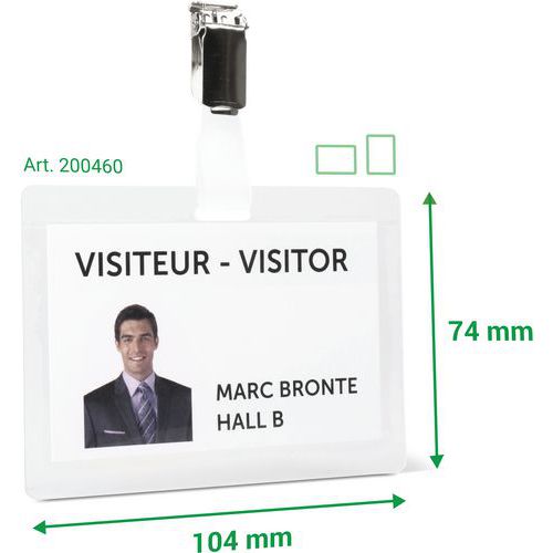 | Intitulé du produit | Kit badge à plastifier avec clips, Coloris: Transparent, Longueur: 104 mm, Largeur: 74 mm, Nb de pièces: 25 |