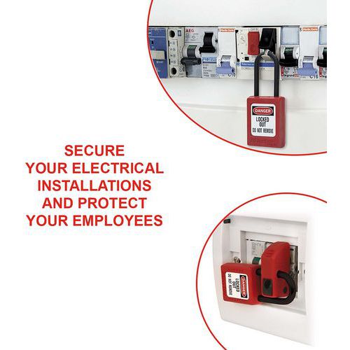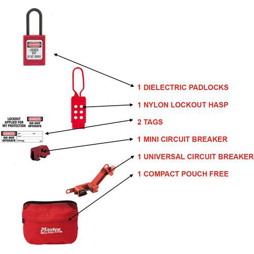 | Intitulé du produit | Kit de consignation électrique Eleckit-En, Coloris: Rouge, Matériau: Élastomère thermoplastique (TPE) |