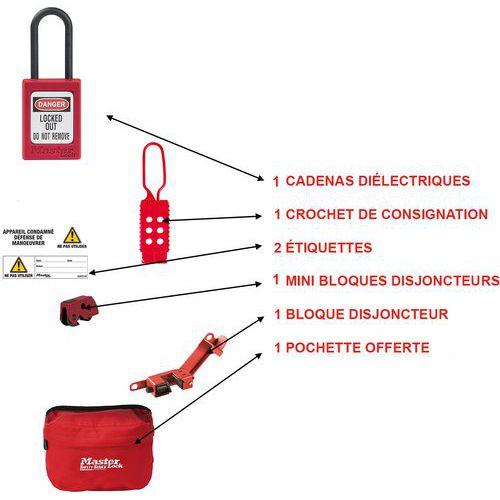 | Intitulé du produit | Kit de consignation électrique ELECKIT-FR, Coloris: Rouge, Matériau: Élastomère thermoplastique (TPE) |