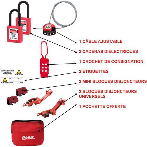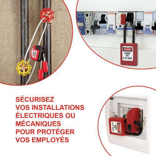 | Intitulé du produit | Kit de consignation générale MAINTKIT-FR, Coloris: Rouge, Matériau: Élastomère thermoplastique (TPE) |