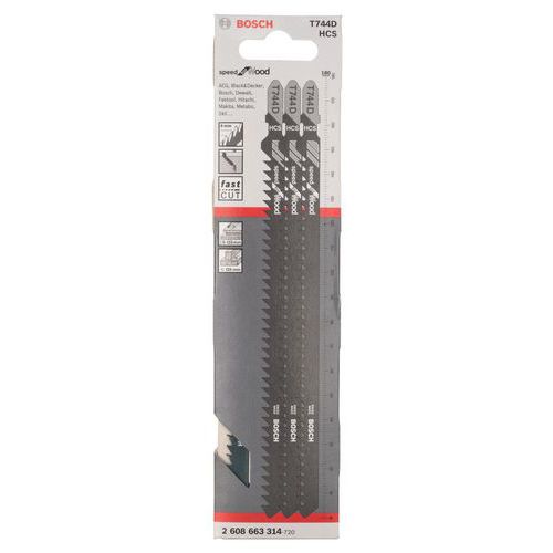 | Intitulé du produit | Kit de lames de scie sauteuse pour bois T744D, Usage: Coupe, Longueur: 180 mm, Intervalle entre 2 dents: 4 mm |