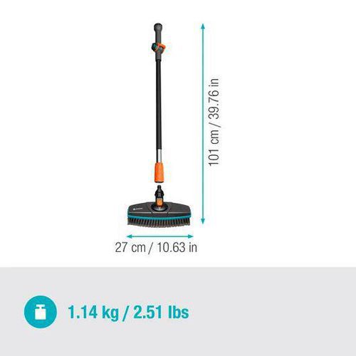 - Il suffit de raccorder la brosse au manche à passage d'eau et d'y ajouter le shampooing Gardena.