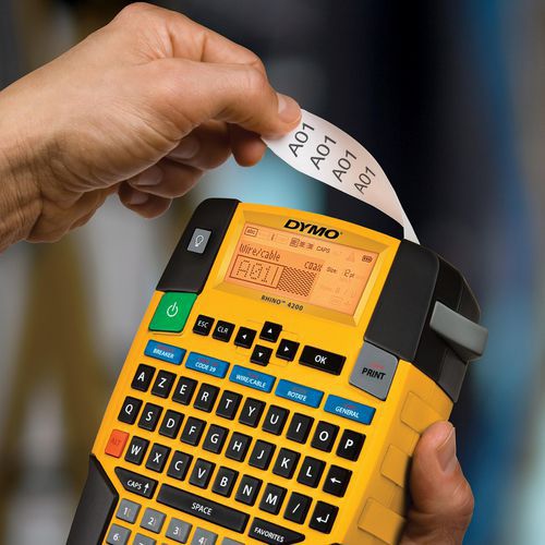 Kit étiqueteuse compacte et rapide pour les professionnels en déplacement. Son clavier Azery est facile à utiliser. Saisie de texte rapide et confortable, mise en forme personnalisée des étiquettes. Touche favoris pour accéder aux étiquettes, symboles et termes d'utilisation récurrente. Clavier ultra-performant, équivalent à celui d'un ordinateur, configurable en fonction du pays. Codes-barres 39/128, étiquettes de longueur fixe, étiquettes communes et étiquettes de fusibles. Imprime des étiquettes de 6, 9, 12 et 19 mm de large en matériaux et coloris divers. Étiqueteuse grand écran rétroéclairé facile à lire, même dans les zones de travail peu éclairées.