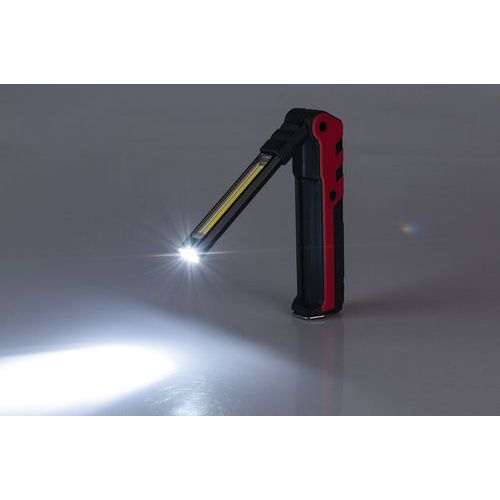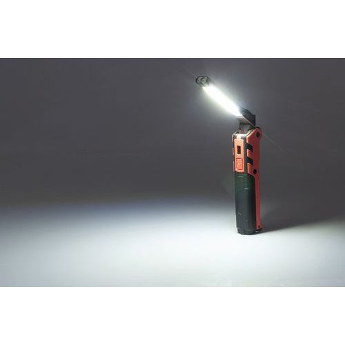 Lampe de travail 2 en 1 au design compact servant à éclairer une grande zone.