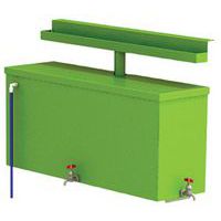 1 robinet pour le potager, 1 robinet pour le poulailler, 1 trop plein. Système de filtration par mousse et grille (nécessite un nettoyage 1 à 2 fois par an). Complètement fermé pour éviter le développement des moustiques. Livré démonté