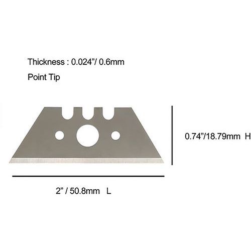| Intitulé du produit | Lame de rechange bout pointu, Matériau: Acier, Lame largeur: 18.79 mm, Lame longueur: 50.8 mm |