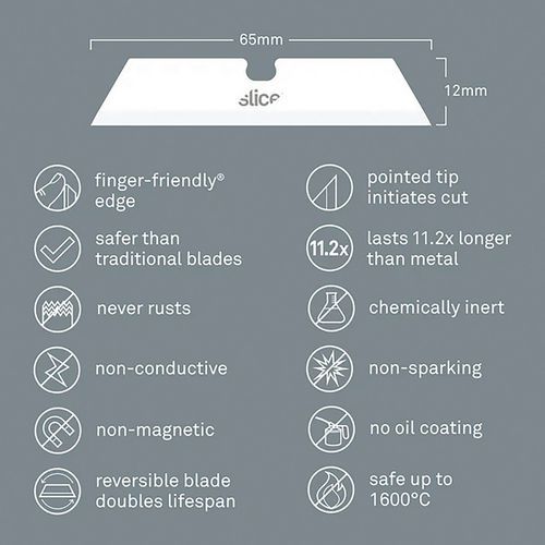 Lame en céramique bout pointu, Lame largeur: 11.95 mm, Lame longueur: 65.13 mm, Lame épaisseur: 1.3 mm