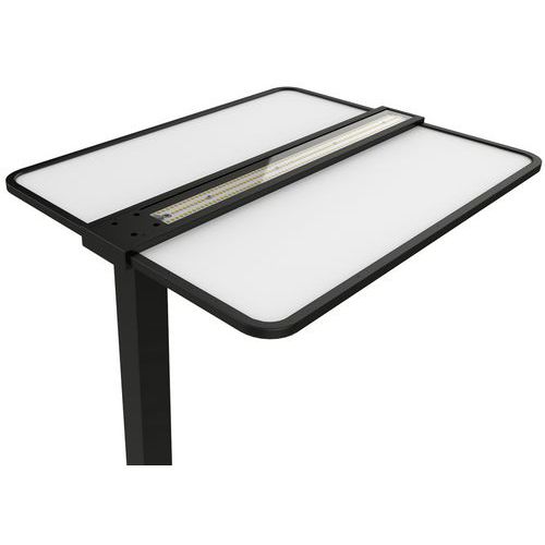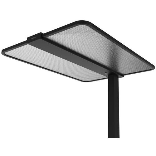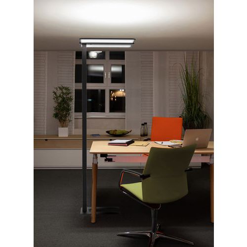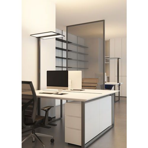 - Le lampadaire Atlas LED Unilux offre un éclairage puissant et homogène adapté aux espaces de travail.