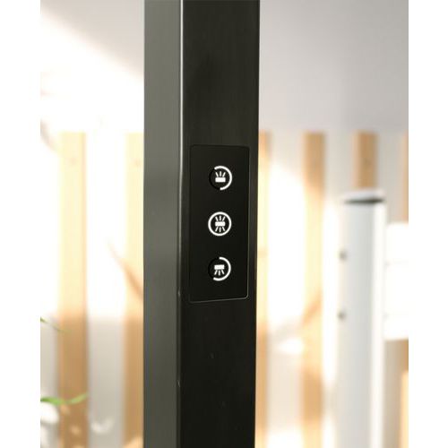 - Équipé de capteurs, il s’adapte automatiquement aux conditions de luminosité et à la présence.