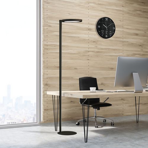 Lampadaire LED Opus Unilux, offre un éclairage direct à 60% et un éclairage indirect à 40%, assurant une répartition lumineuse équilibrée dans votre espace de travail.