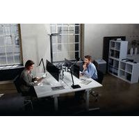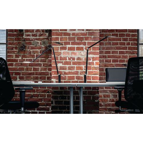 Lampe de bureau à LED au design très fin avec un élégant bras articulé en aluminium à 2 éléments et passage des câbles invisible. Socle en pince. Longueur du câble d'environ 2 m. Teinte de la lumière : blanc chaud (température de couleur 3 000 K) Fabriqué en Allemagne Service installation/montage : Option montage