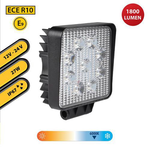 Lampe de travail carré pour véhicule 12/24V - Stak