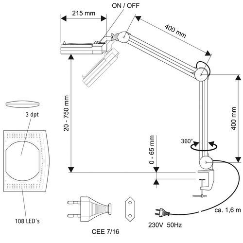 | Intitulé du produit | Lampe loupe LED rectangulaire 470 lm, Flux lumineux: 470 lm, Type d'ampoule: Ampoule ou module à led |