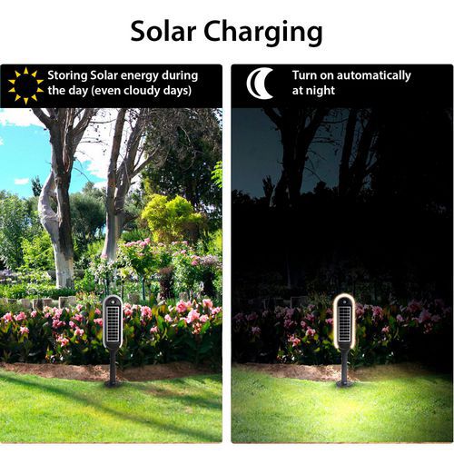 Batterie Li-ion 2000mAh, se recharge pendant la journée et s'allume automatiquement au crépuscule.