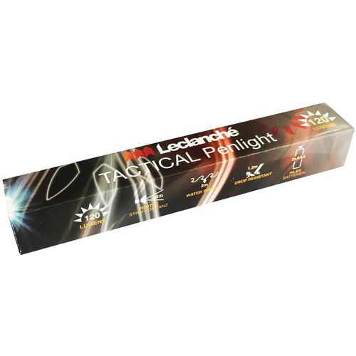 | Intitulé du produit | Lampe torche Tactical Penlight, Flux lumineux: 120 lm, Autonomie: 6 h, Portée: 46 m, Pile fournie: non |