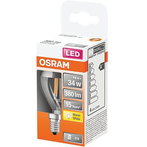 | Intitulé du produit | Led Sph Clair Fil.Cal.Argent.4W E14 Ch, Flux lumineux: 350 lm, Type de culot: E14 |